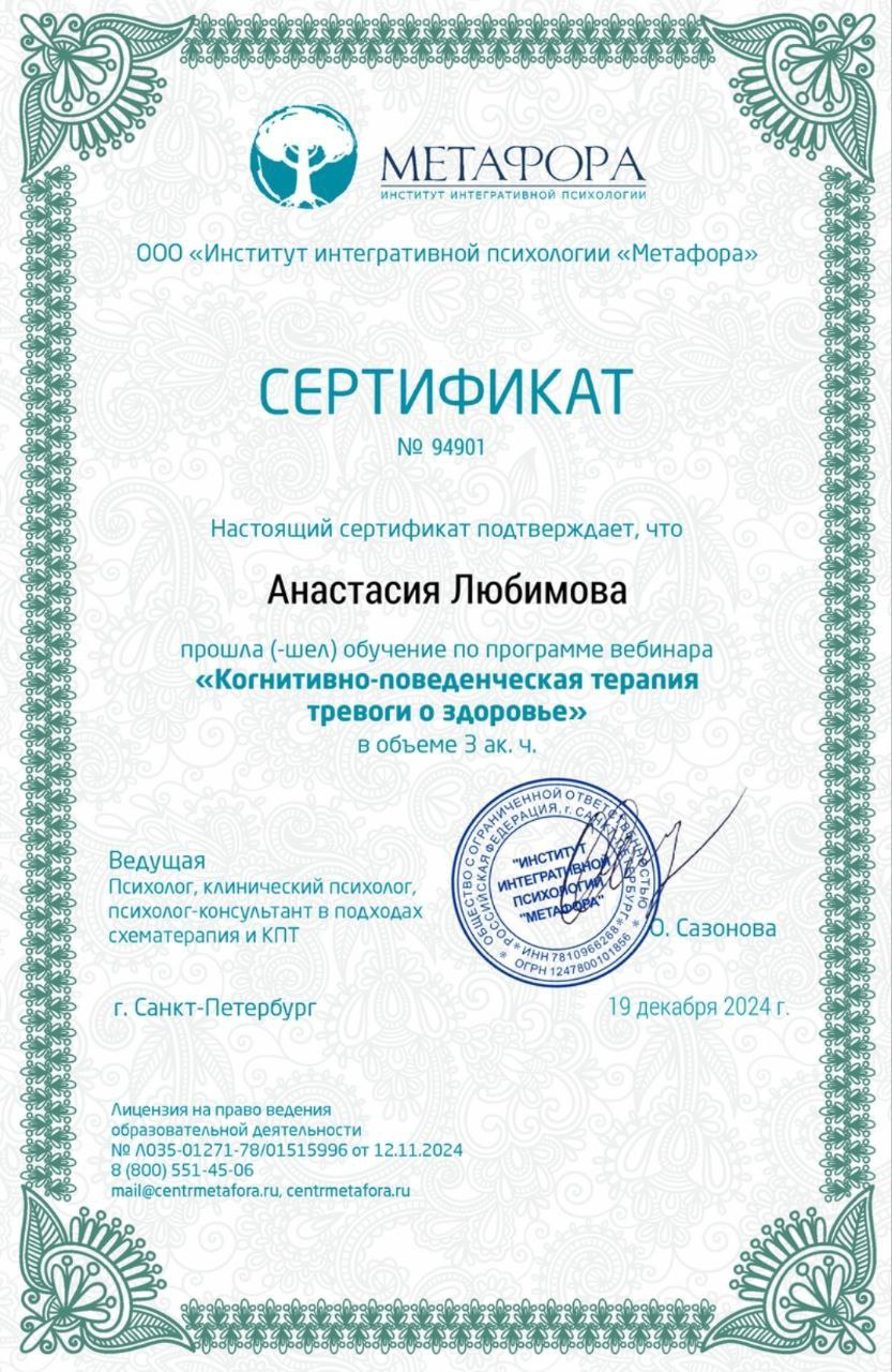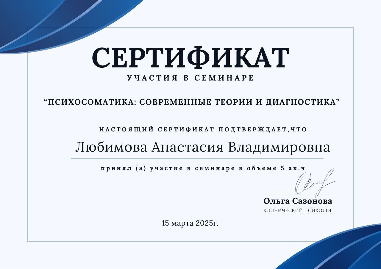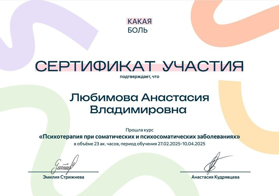 ✔ Терапия тревожных и депрессивных состояний, связанных с телесными симптомами