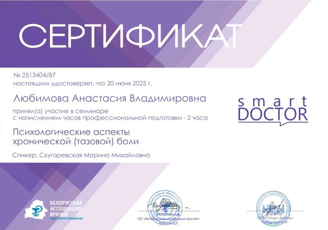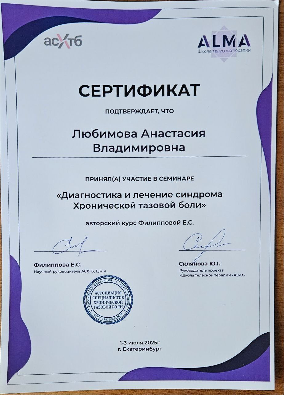 ✔ Работа с синдромом хронической тазовой боли (СХТБ) и психосоматическими расстройствами