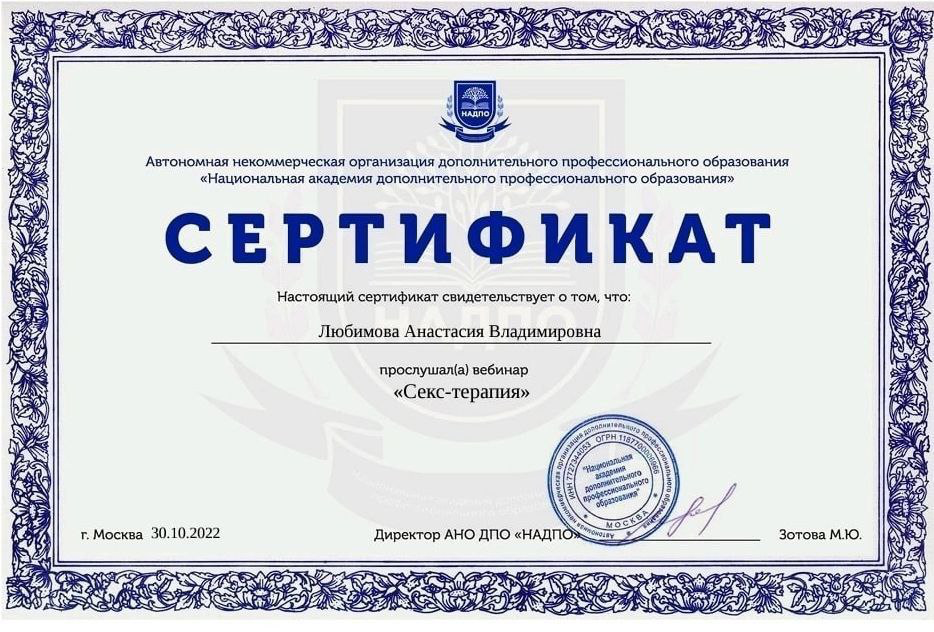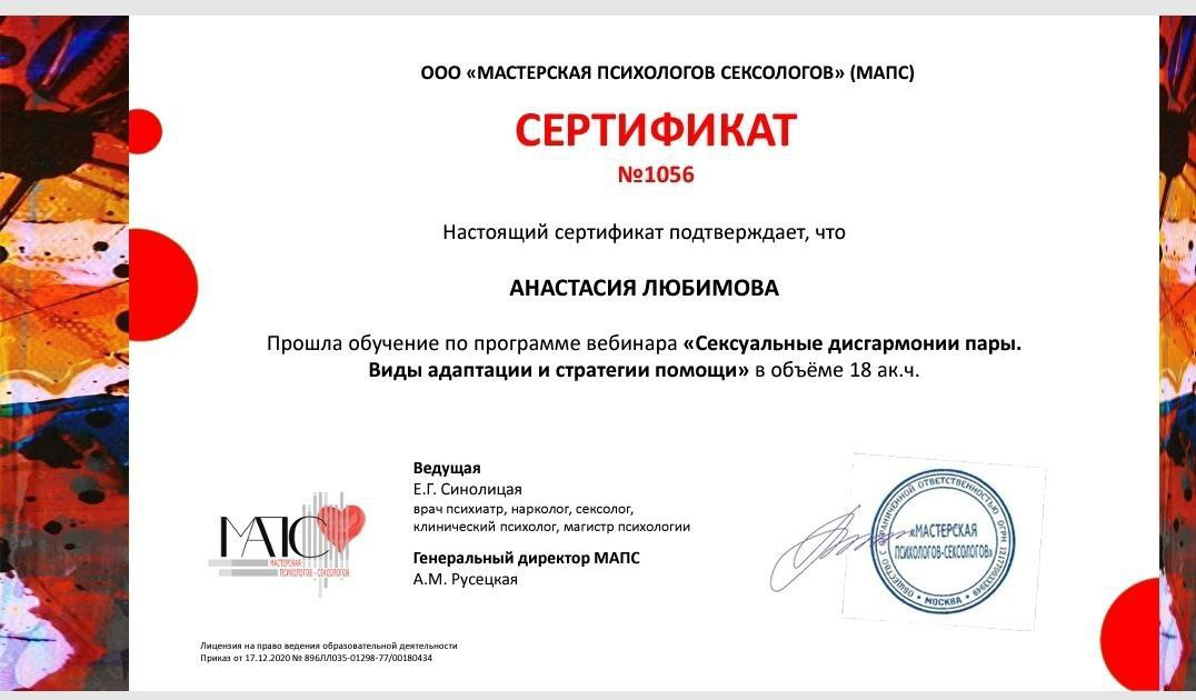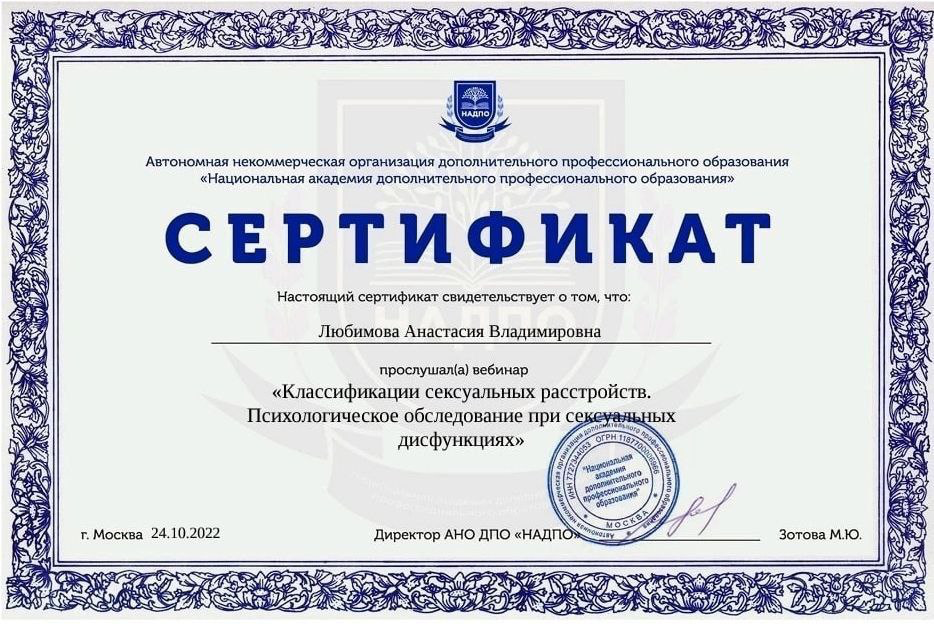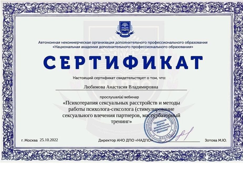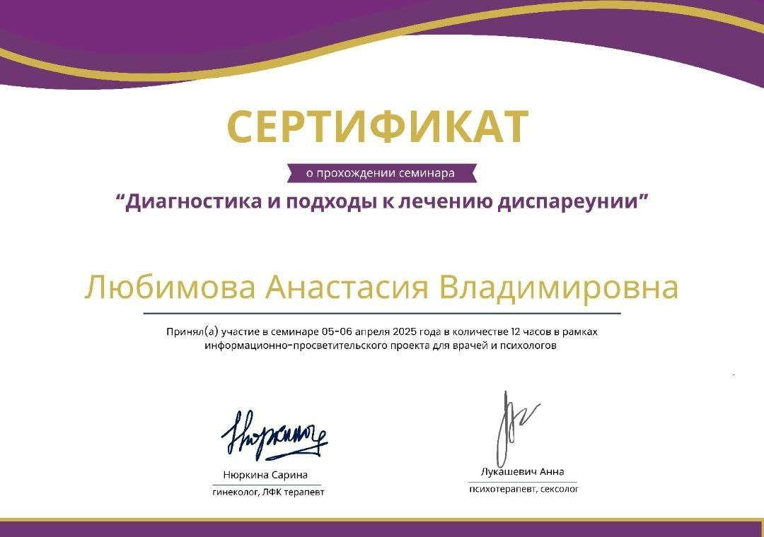 ✔ Психотерапия сексуальных расстройств (дисфункции, снижение либидо, диспареуния)