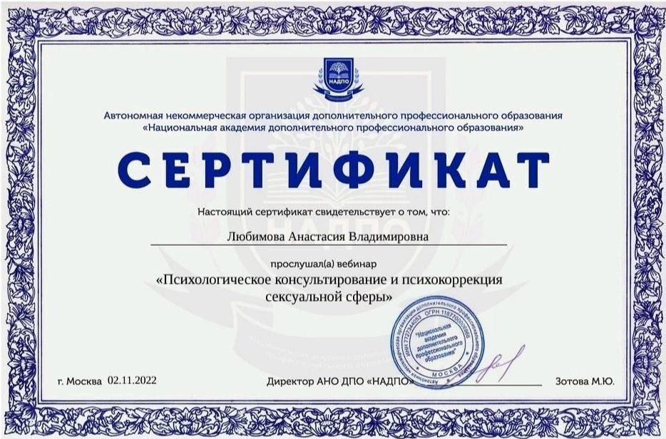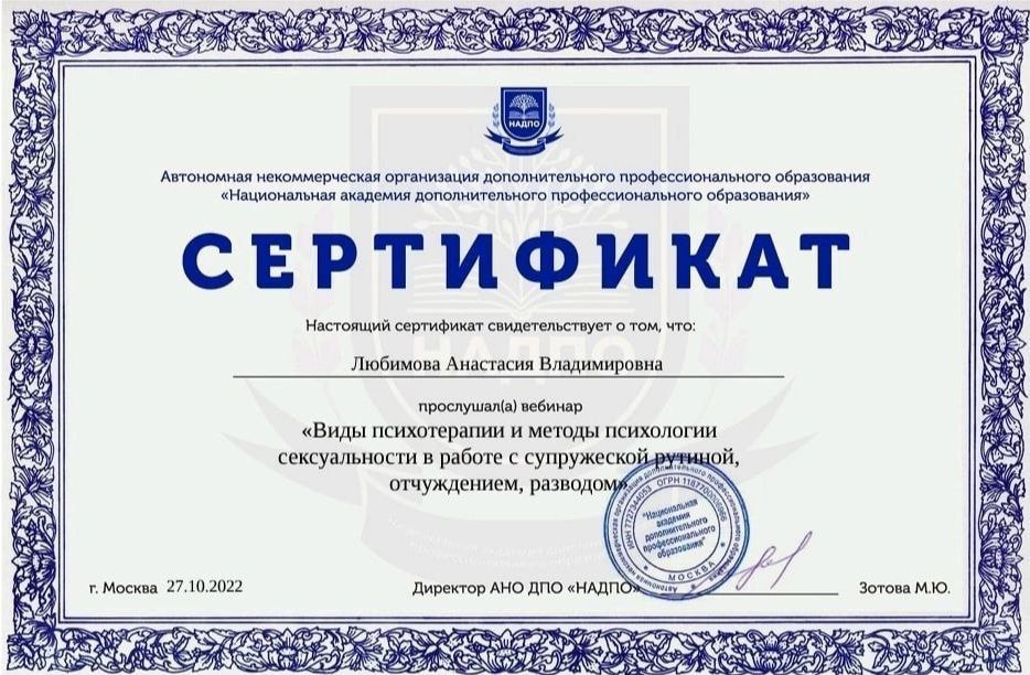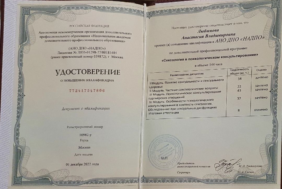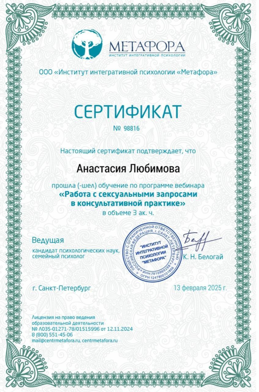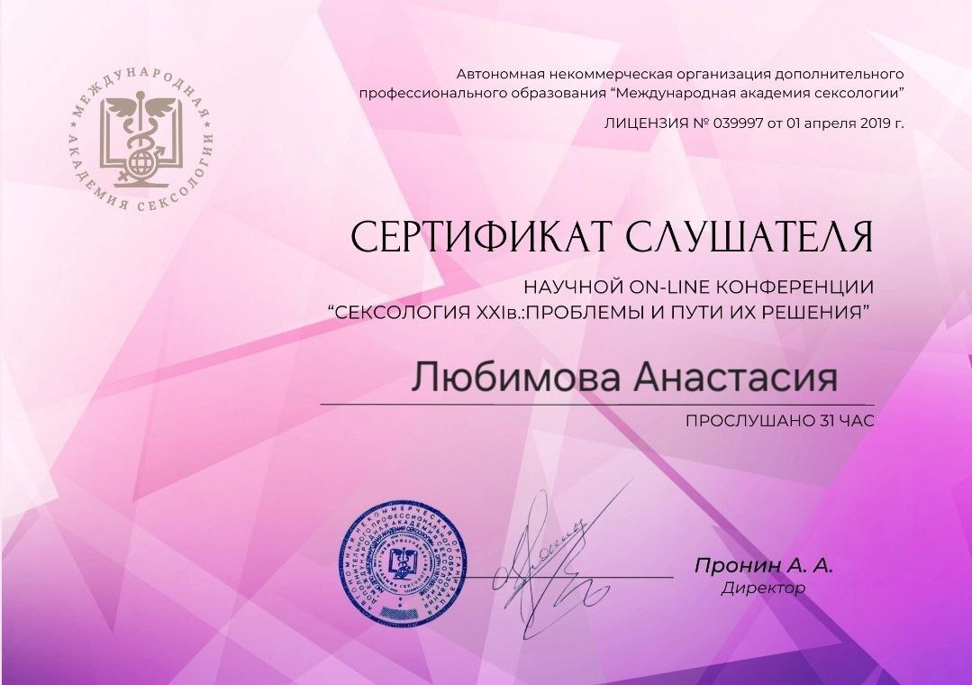 ✔ Психотерапия сексуальных расстройств (дисфункции, снижение либидо, диспареуния)