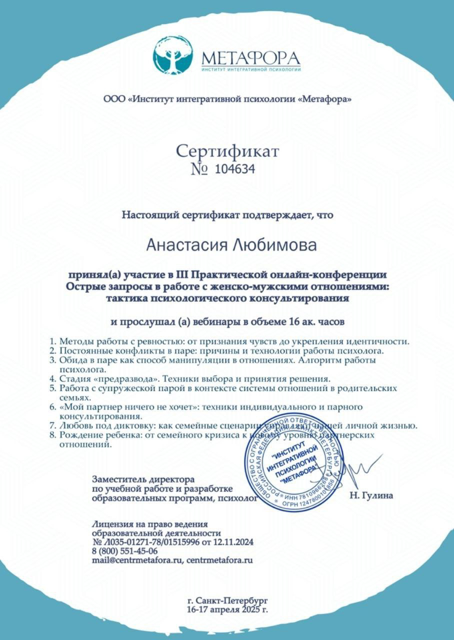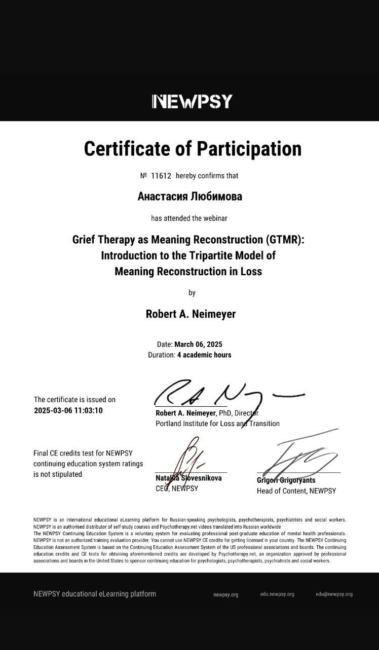 ✔ Консультирование по вопросам отношений, переживания утраты, травм и зависимостей