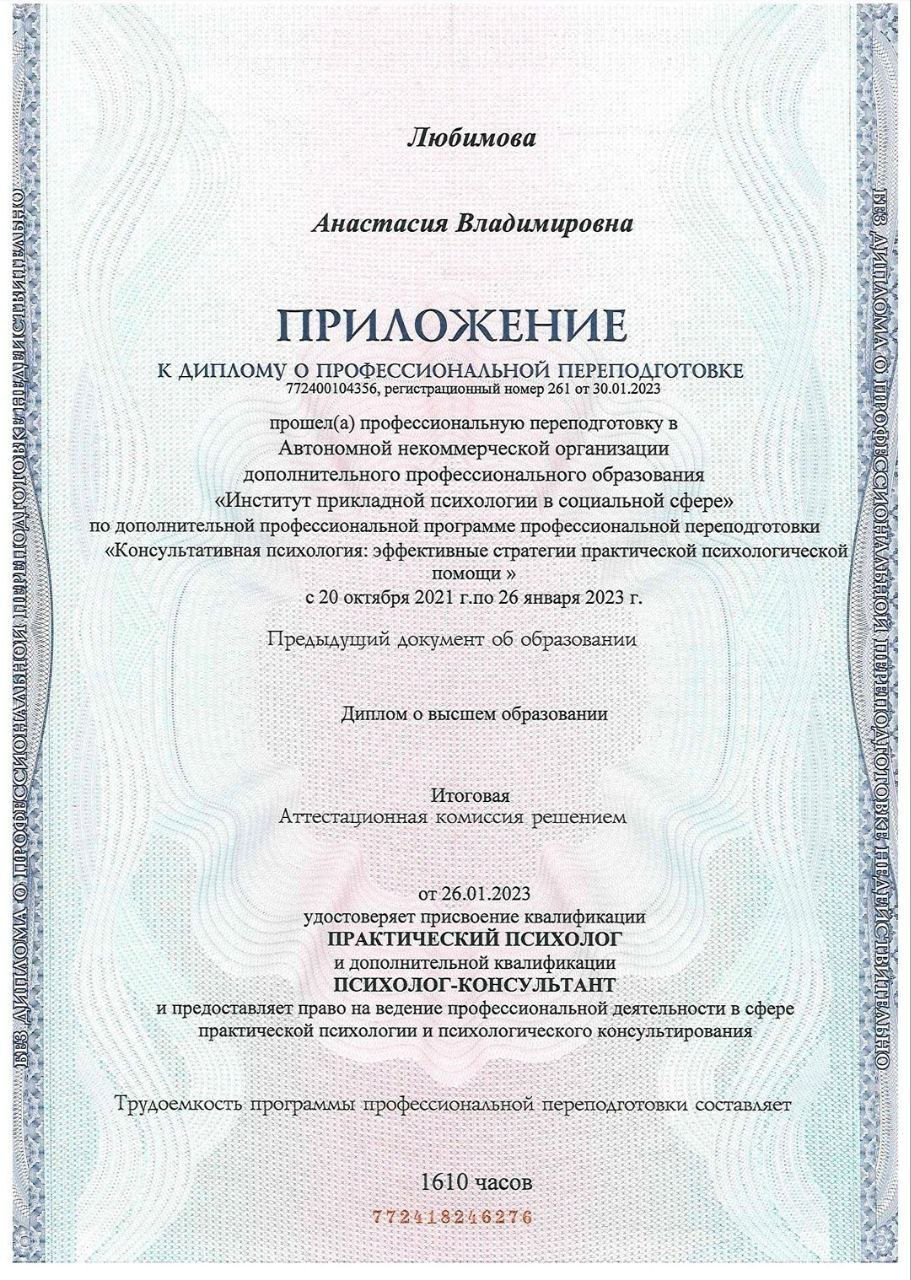 Профессиональная специализация: