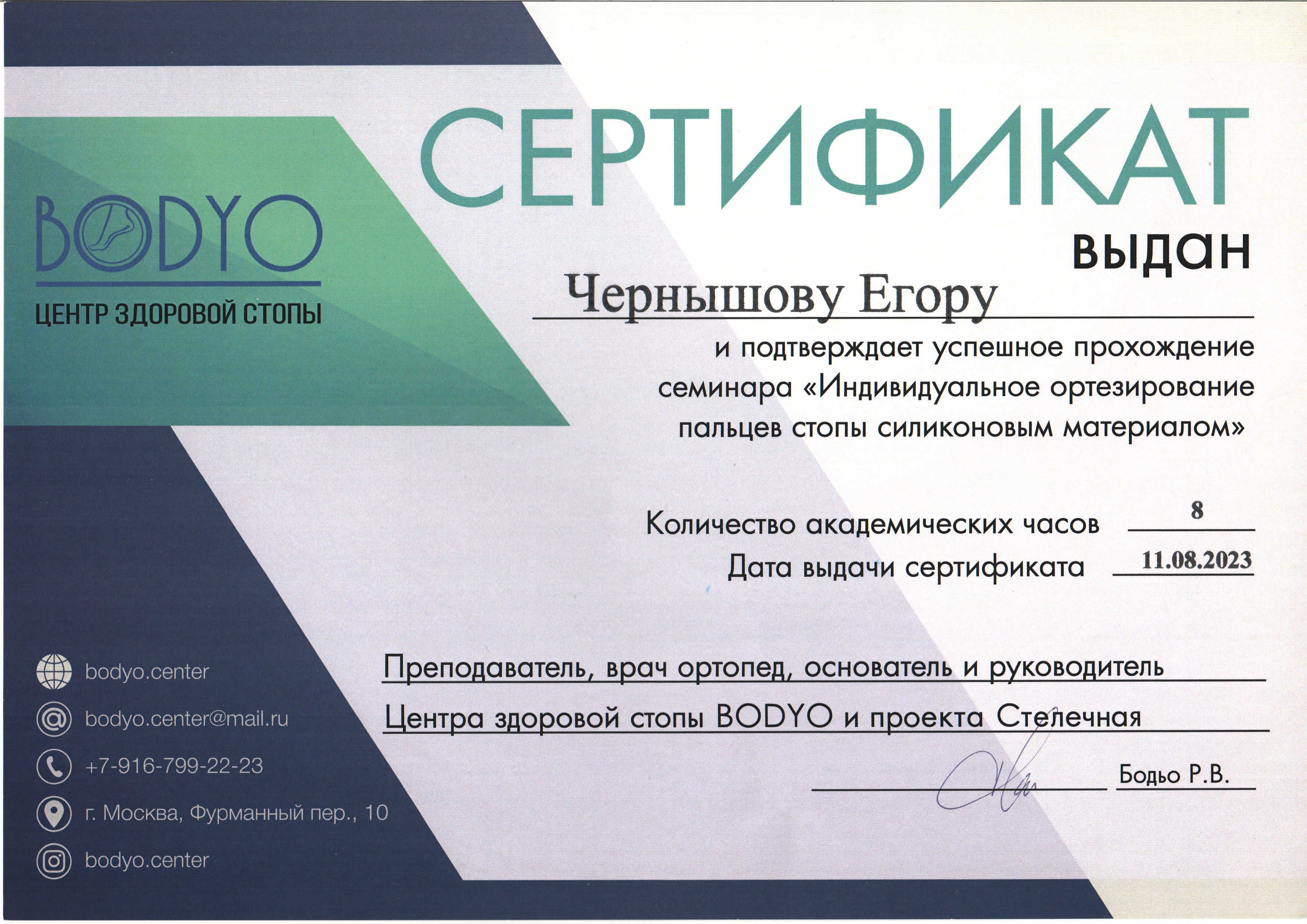 Запись к данному специалисту осуществляется через администратора по номеру телефона.